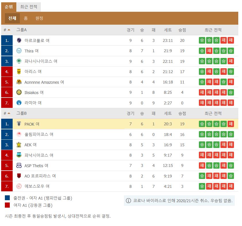 총 14개 팀이 있고, 스플릿 시스템으로 운영된다. 강등도 있다. PAOK는 그룹 B에서 1위를 달렸다. 코로나 바이러스로 인해 그대로 취소되면서 시즌이 끝났다.