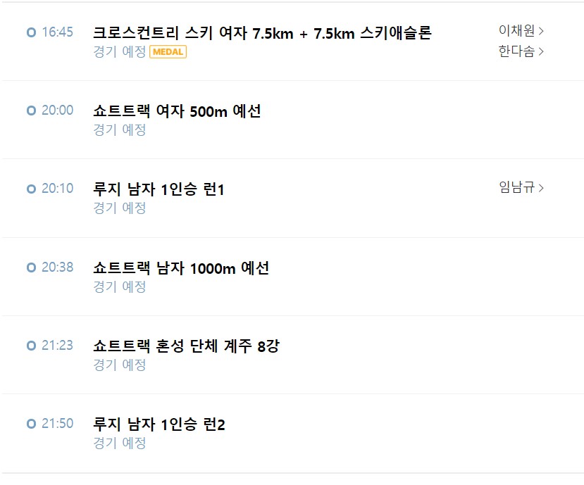 | 2022 베이징 동계올림픽 전체 경기일정 및 한국 주요경기 일정 (0) | 2022.02.03 |