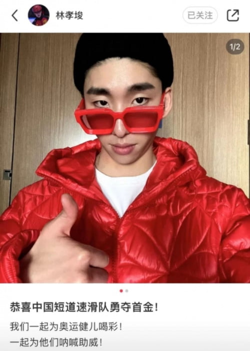(1) 중국 귀화한 임효준, 中 쇼트트랙 금메달 소식에 "축하합니다"