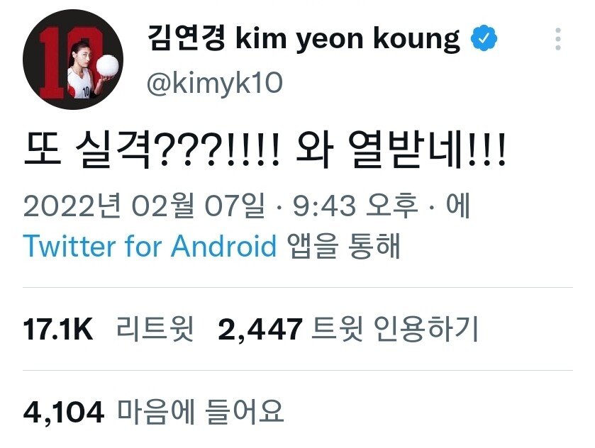 쇼트트랙 경기를 본 김연경은 트위터로 분노를 표출했다.