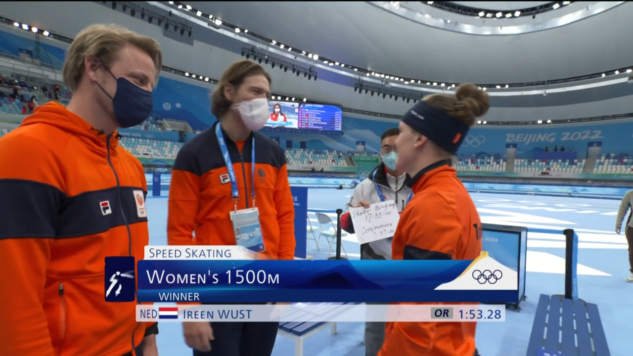 뷔스트는 스피드스케이팅 여자 1500m에서 1분 53초 28의 올림픽 신기록을 수립하며 금메달을 목에 걸었다. 2018년 평창 동계올림픽에서도 이 종목 금메달을 따냈던 뷔스트는 2연패에 성공했다.