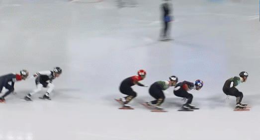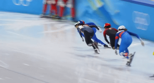 최민정은 첫 번째 바퀴에서 자신의 주특기 아웃코스 추월을 시도했지만, 여의치 않았다. 여전히 2위였다. 하지만 코너에서 그대로 쓰러졌다.