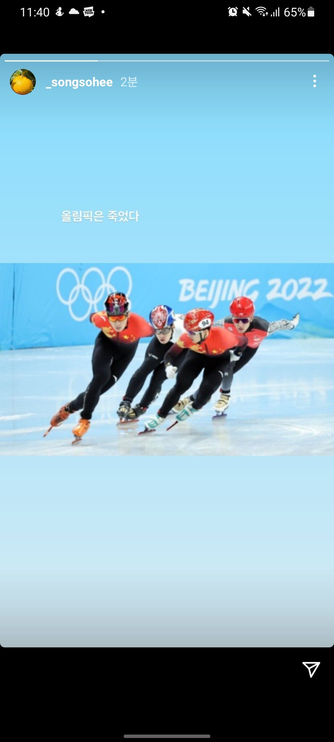 골때녀의 송소희는 올림픽은 죽었다 라는 메시지를 남겼다.