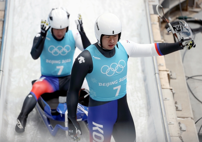 루지 2인승 박진용-조정명은 2022 베이징 동계올림픽 루지 2인승 1, 2차 시기 합계 1분58초727로 골라인을 통과했다. 총 17팀 중 12위를 기록했다.
