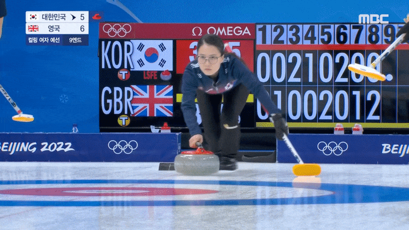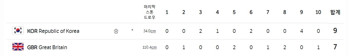 스킵 김은정의 4엔드 마지막 샷이 성공하면서 후공인 영국에 1점 스틸에 성공한다.