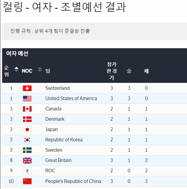 한국 1승 1패를 기록하면서 3위로 올라갔다.