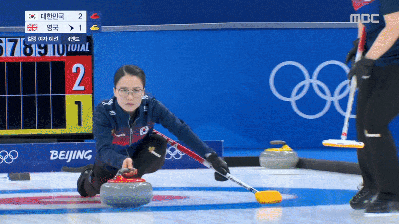 세계 랭킹 3위인 '팀 킴'은 11일 중국 베이징의 내셔널 아쿠아틱 센터에서 열린 컬링 여자 4인조 두 번째 경기에서 영국 팀 이브 뮤어헤드(8위)를 꺾었다.