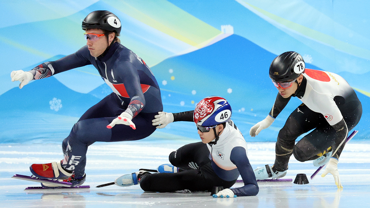 중국은 쇼트트랙 남자 5000m 계주 준결승 1조에서 6분 51초 040으로 4개국 중 가장 늦게 결승선을 통과했다.