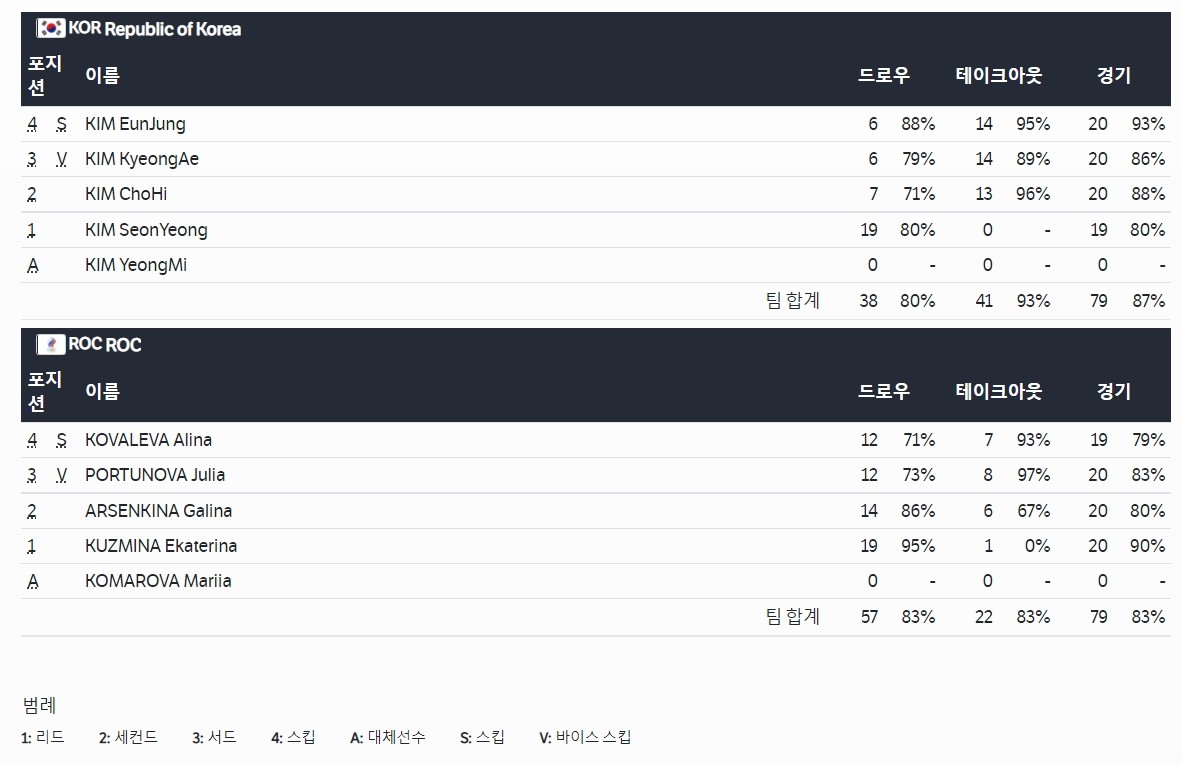 캐나다와의 1차전을 패했던 한국은 전날 영국에 이어 ROC까지 제압하며 2연승에 성공하며 4강 진출 전망을 밝혔다.
