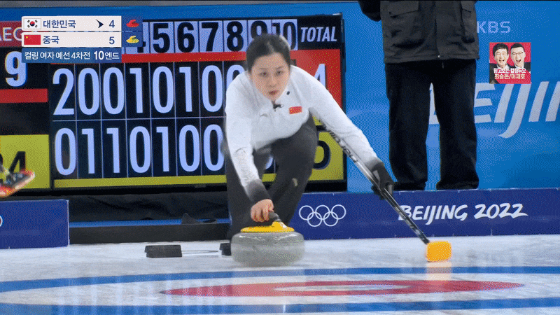 (3) 여자 컬링, 중국과 연장전 접전 끝에 5:6으로 패배...2승 2패
