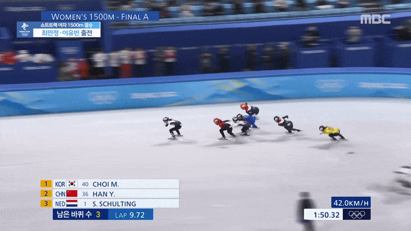 최민정은 2018년 평창 동계올림픽에 이어 1,500m 종목 2연패를 달성했다. 최민정은 또 1,000m와 3,000m 계주 은메달에 이어 이번 대회 자신의 세 번째 메달을 금빛으로 장식했다.