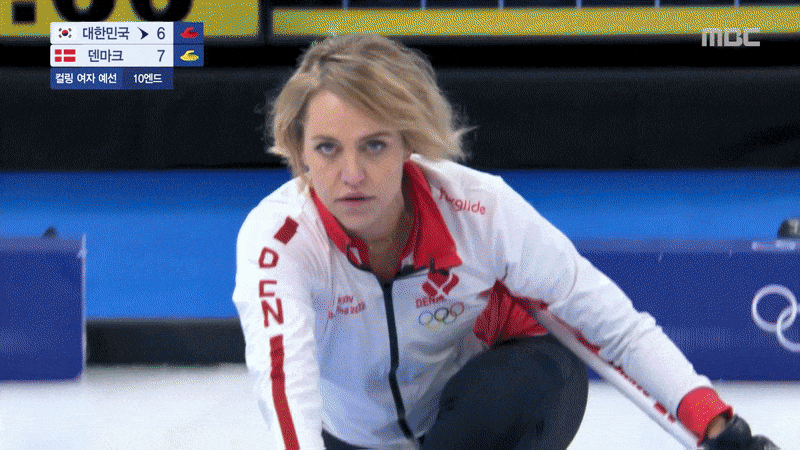 덴마크가 10엔드 마지막 샷을 실수하면서 한국에게 2점 득점 기회가 왔다.